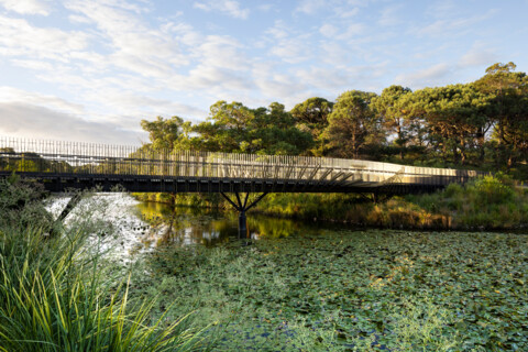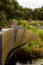 The bridge widens at the centre to form a viewing platform, a place of repose, allowing pedestrians to pause and appreciate the aquatic and bird life, and flora, such as endangered banksia scrubs and native grasses.