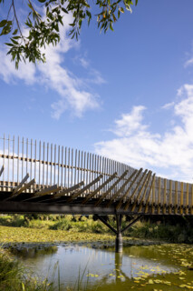 “This contemporary connection to the much-loved park also has environmental values at the heart of the design. It protects banks from erosion, preserves habitat for endangered species, and provides visitors with an opportunity to directly engage with the pond ecosystem.”