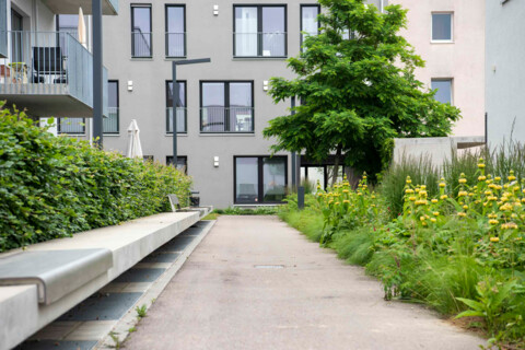 Auszeichnung | Kategorie: Pflanzenverwendung & Bauwerksbegrünung | Wohnanlage Hinterangerstraße in Ingolstadt | Entwurfsverfasser: grabner huber lipp landschaftsarchitekten und stadtplaner partnerschaft mbb, Freising | © Laura Loewel