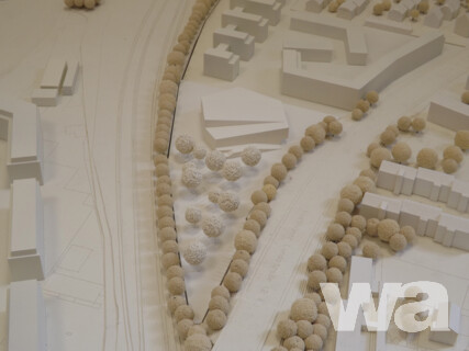 The community centres of the districts Mainz-Kostheim and Mainz-Kastel shall be replaced by a joint community centre, optimising the general use with a modern and functional floor plan and furnishing. It shall include an event hall for 800 persons, multifunctional rooms, kitchenette, bowling alleys, caretaker’s flat, storage etc. The centre shall connect both districts and is located between the planned residential area and the Linde quarter. A structural division between the residential area and the community centre shall be planned with a closed spatial edge towards the residential district. The new building shall fit into that four-storey development. There is no specified maximum height for the community centre. The program comprises 2.800 m2 and open areas.