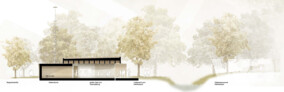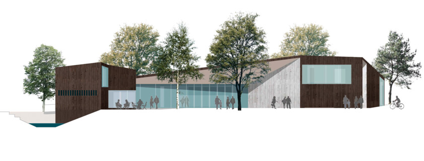 An essential part of the new facility is a spacious event hall that can be used by the citizens centre and the youth club. The other areas must be used separately. The citizens centre comprises a citizens bureau and two advice offices. Citizens centre 60 m2, youth club 200 m2, café 95 m2.