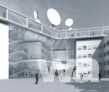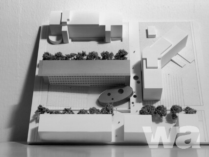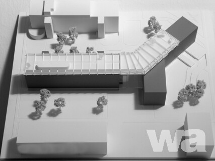 Es gibt heute keinen angemessenen Foyerbereich: dies betrifft auch Gebäude 122. Deshalb sollen die Eingangsbereiche zusammengefasst und gemeinsam mit einem Raumangebot für publikumsintensive Nutzungen eine neue zentrale Mitte für beide Häuser formuliert werden. Das Raumprogramm gliedert sich u.a. in: