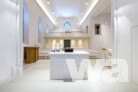 Die Erweiterung in Längsrichtung schafft im Innenraum Platz für einen Vorraum, der sowohl Treffpunkt für Gläubige wie auch als Erschließung für das barrierefreie WC, den Aufzug und den Zugang zur Empore dient.