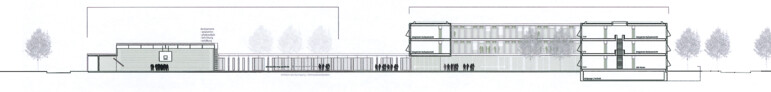 Die beiden Schulen erhalten eine gemeinsame Pausenhalle, die als Mittelpukt der Schulen zu interpretieren und baulich zur formulieren ist. Für die gemeinsame Nutzung wird in direkter Zuordnung eine Dreifach-Sporthalle errichtet. Der Baubereich wird durch das Vereinszentrum und ein Kunstrasenspielfeld ergänzt. Die Anlagen werden am Wochenende und abends ab 17.00 Uhr auch von Sportvereinen genutzt. Deshalb sollen Sporthalle, Vereinszentrum und Kunstrasenspielfeld in einer Einheit konzipiert werden.