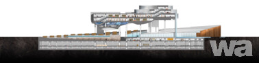 The new Cultural Centre with library and fine arts museum will be a low energy building and its architecture shall become a landmark in the ”Cosmopolitan Taichung“. The project will be developed in conjunction with Taichung Gateway Park, Convention and Exhibition Centre and Taiwan Tower (wa2/2011 + 1/2012). The library will focus on a round-the clock environment, information systems and adult learning centre. The fine arts museum will focus on art collections, exhibitions and education. The program is divided in: Library with 35.155 m², divided in reader services 14.950 m², technical services 1.160 m², administration 1.827 m², meeting and learning 960 m² and public services 20.347 m². Fine Arts Museum with 27.565 m², divided in exhibition 8.000 m², collection 4.000 m², education 600 m², research 400 m², administration 800 m² and public services 1.800 m².
