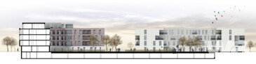 The former TÜV grounds in Münster shall be developed on 11.270 m² with energy efficient, high quality and inexpensive flats with balconies and terraces, with all flats planned to be barrierfree. The program comprises: 95 publicly subsidized flats, 78 owner-occupied flats, Daycare centre for children for 4 groups, 715 m², Shared flats for homeless people 60+, 400 m².